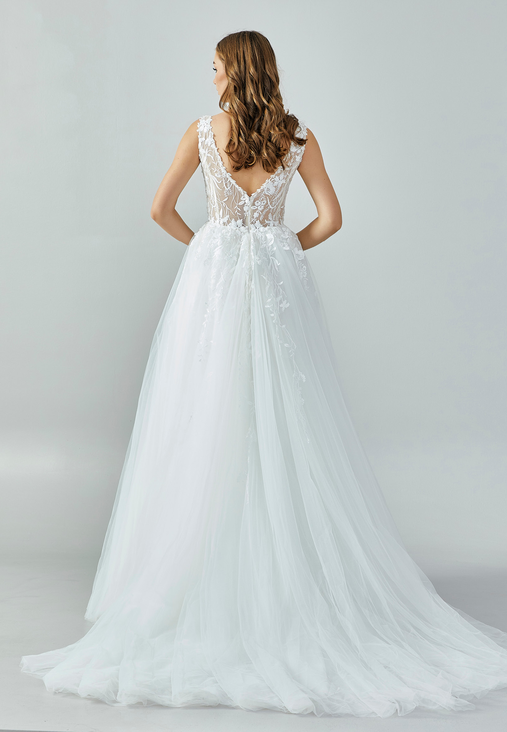 Fabric: Hand-embroidered lace, soft tulle overlay
