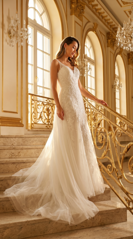 Sleeveless Lace A-Line Gown with Glitter Tulle